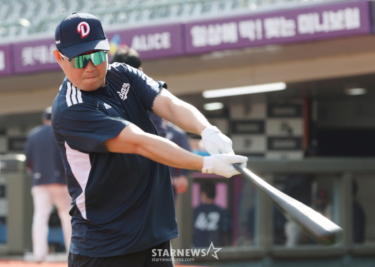 斗山(トゥサン)のヤン·ウィジが打撃練習をしている。
