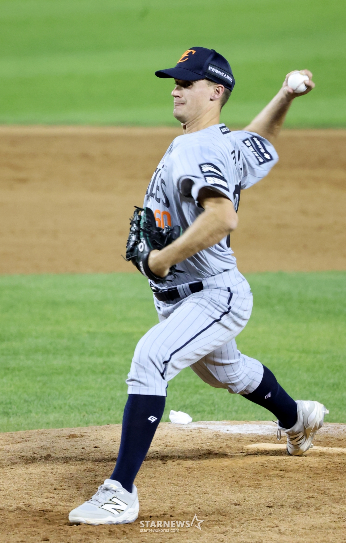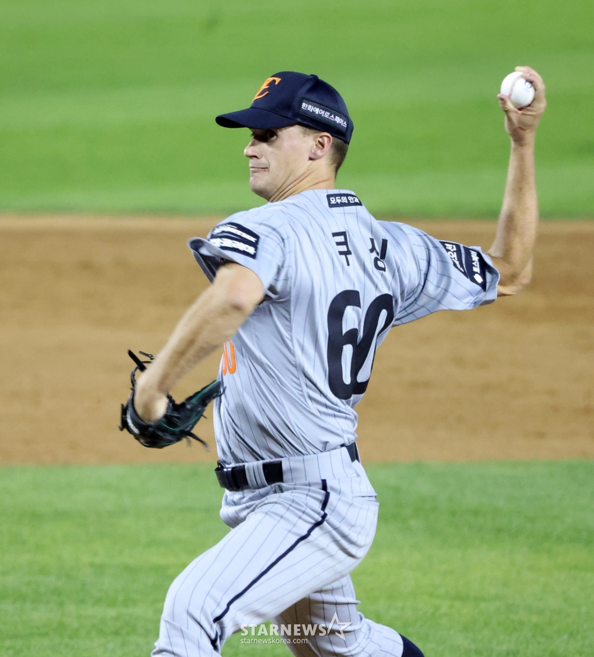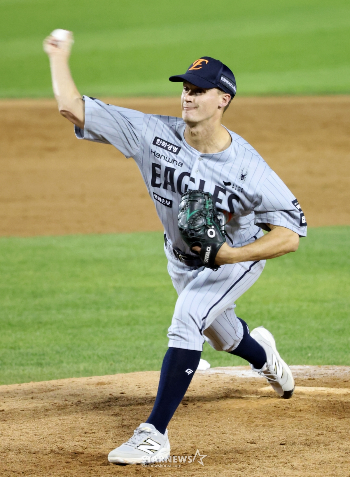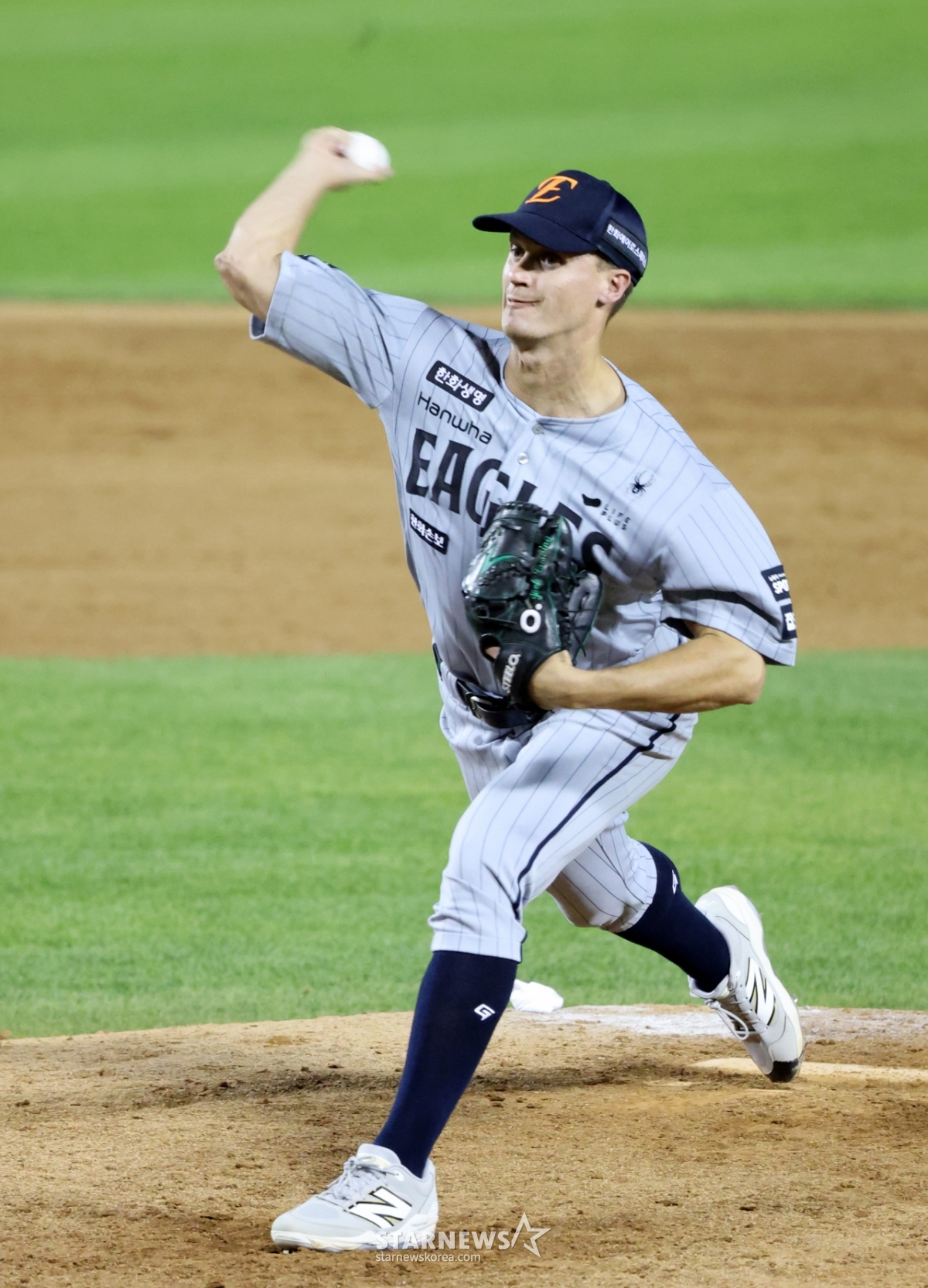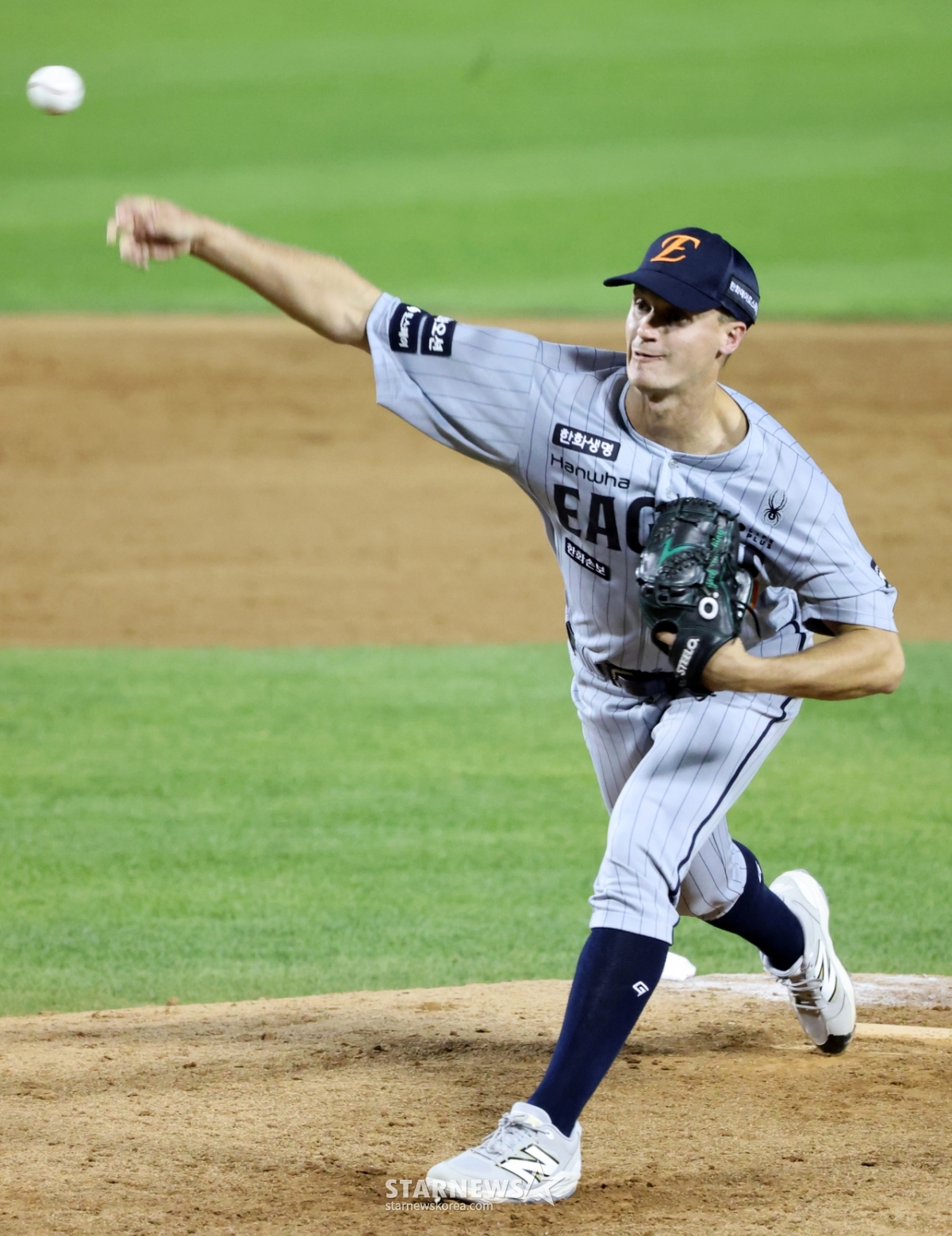 ハンファの外国人投手ジャック·クッシングが23日、蚕室(チャムシル)野球場で行われた2026KBOリーグLGツインズとハンファイーグルスの試合8回裏に登板し、無失点ピッチングを繰り広げている。 2026.04.23.