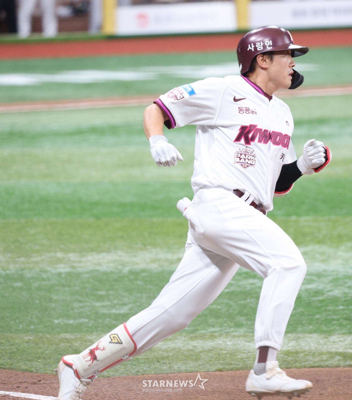 キウムの呉先進3回裏、1死2塁で先制1打点適時二塁打を放ち、疾走している。