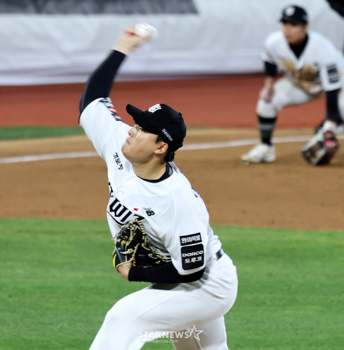 KTの右腕であるハン·スンヒョクが28日、水原KTウィズパークで行われた2026KBOリーグLGツインズとKTウィズの試合8回表に登板している。 2026.04.28.