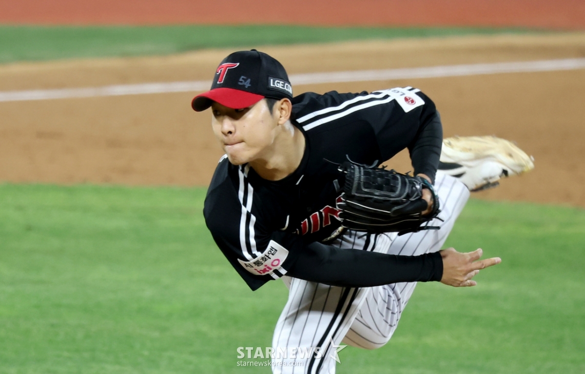 LGサイドアームブルペンのウ·ガンフンが28日、水原KTウィズパークで行われた2026KBOリーグLGツインズとKTウィズの試合7回裏、ウェルズに続いて登板している。 2026.04.28.