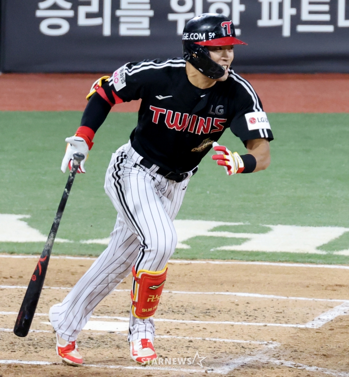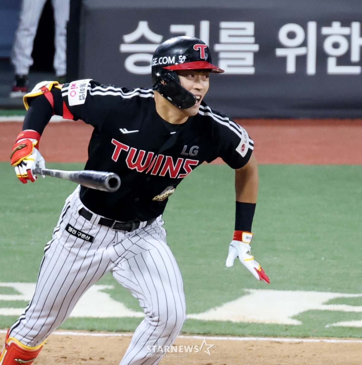 LGの2番打者、チョン·ソンホが29日、水原(スウォン)KTウィズパークで行われた2026KBOリーグLGツインズとKTウィズの試合7回表にゴロを打った後、全力疾走している.. 2026.04.29.