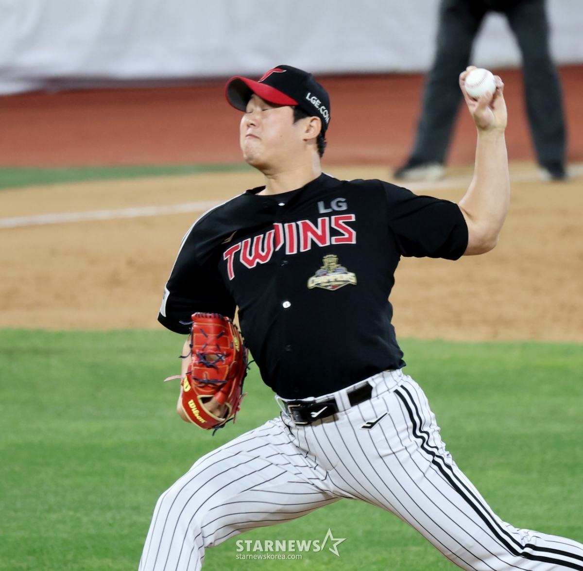 LGの抑え、ハム·ドクジュが30日、水原KTウィズパークで行われた2026KBOリーグLGツインズとKTウィズの試合9回裏、最後の打者キム·サンスを外野フライで抑え、勝利を守っている。 2026.04.30
