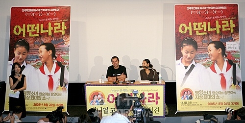 ▶이 자리가 마치 축구팀에 입단해서 기자회견하는 자리 같다. 나로서는 여러분의 소감이 더 궁금하다. 지난해 9월에는 ‘어떤 나라’가 평양에서, 한달 뒤인 10월에는 부산국제영화제에서 소개돼 반응이 좋았다. 오는 26일 서울에서도 개봉돼 아주 기쁘다.