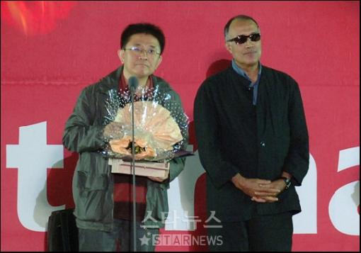 제 10회 부산국제영화제에서 영예의 뉴커런츠상을 수상한 중국의 장률 감독이 김동호 부산영화제 집행위원장에게 사랑이 가득 담긴 인사를 남겼다.