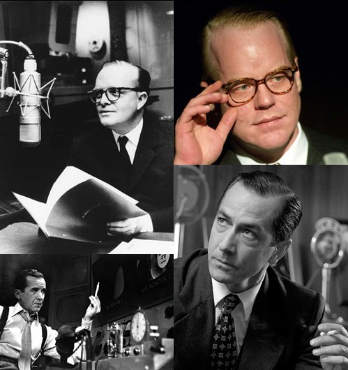 <사진2=실제 트루먼 카포트(위 왼쪽), '카포트'의 필립 세이모어 호프만(위 오른쪽). 실제 에드워드 머로(아래 왼쪽), '굿 나잇 앤 굿 럭'의 데이비드 스트래던(아래 오른쪽)>