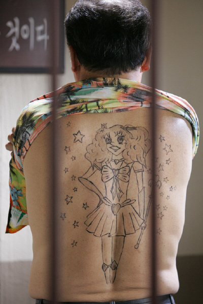 특히 '태풍'에서 해적으로 출연한 장동건의 온 몸 문신과 '비열한 거리'에서 삼류조폭으로 열연한 조인성의 용 문신, '강적'의 교도소 탈옥범 천정명의 여의주를 문 용 문신 등 그동안 영화에서 주목을 끌었던 문신들과 달리 '거룩한 계보'의 문신은 코믹 설정이다.