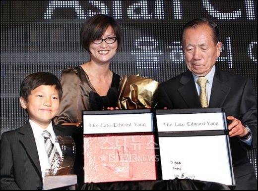 그 주인공은 이미 세상을 떠난 뒤였지만 그의 자리를 대신한 사람은 어린 아들 션 양이었다. '아시아 영화인의 밤' 행사에 참석한 아들은 피곤에 지쳐 꾸벅꾸벅 졸았고 채 잠에서 완전히 깨어나지 못한 채 무대에 올라 아버지가 남긴 영화의 향취를 핸드프린팅으로 남겼다. 곁에는 아버지의 아내이자 영화적 동지였던 엄마 카일리 펑도 함께 했다.