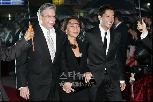 이날 개막식에 남편과 함께 참석한 배우 김진아가 동생 김성준과 함께 레드카펫을 밟으며 입장하고 있다.