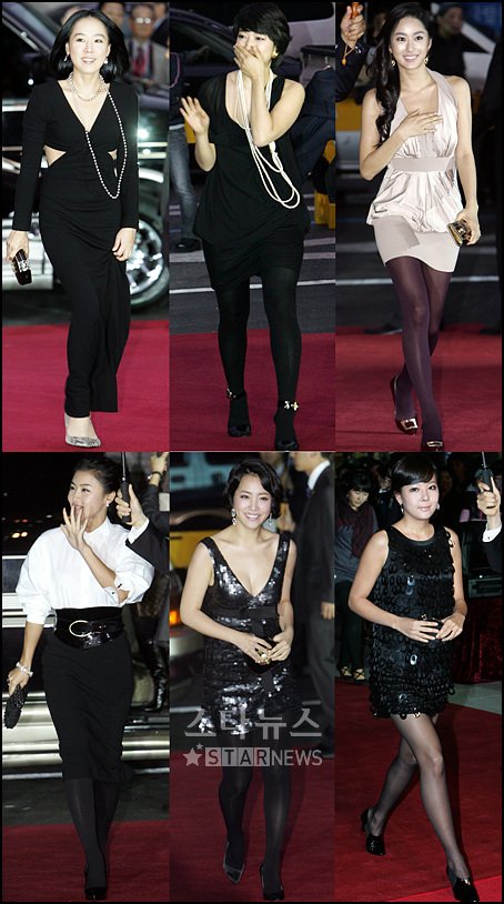 개막식에 참석한 배우 강수연과 박신혜, 전혜빈, 소유진, 한지민, 하지원(맨 위 왼쪽부터 시계방향으로)이 레드카펫을 밟으며 입장하고 있다.