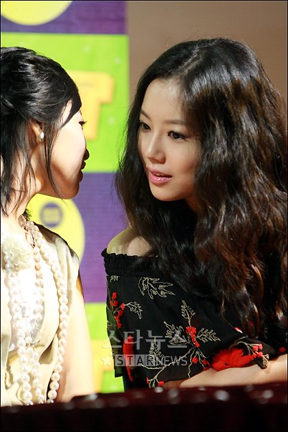 배우 박보영과 문채원이 28일 오후 서울 용산 CGV에서 열린 영화 '울학교 이티(감독 박광춘)' 시사회에서 귓속말을 나누고 있다.