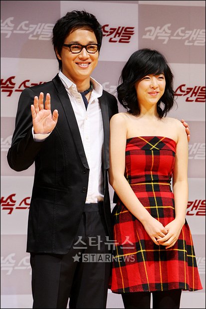 배우 차태현과 박보영이 27일 오전 서울 이화여자고등학교 100주년 기념관에서 열린 영화 '과속 스캔들'제작 보고회에 참석해 인사를 하고 있다.