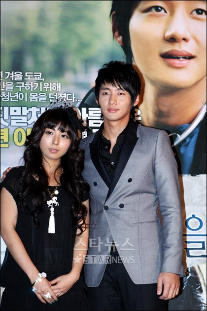 일본 가수 겸 배우 오나가 마키와 배우 이태성(왼쪽부터)이 27일 오후 서울 명동 롯데시네마에서 열린 영화 '너를 잊지 않을거야(감독 하나도 준지)' 시사회에서 포토타임을 갖고 있다.
