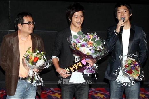 배형준 감독, 배우 이완, 송창의가 29일 오후 서울 강남구 삼성동 코엑스 메가박스에서 열린 영화 '소년은 울지 않는다'(감독 배형준, 제작 MK픽쳐스) VIP시사회에 참석해 무대인사를 하고 있다.