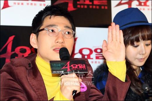 배우 정운택이 28일 오후 서울 충무로 대한극장서 열린 영화 '4요일' 시사회에서 영화에 관한 취재진의 질문에 답하고 있다.