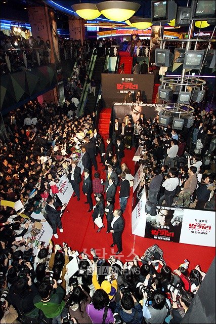 1층에서 약 10m의 레드카펫을 걸어오는 데 걸린 시간만 무려 1시간10분. 레드카펫 양 옆으로 늘어선 팬들과 일일이 눈을 마주치며 인사를 하느라 좀처럼 앞으로 나가질 못해 아래층에서 기다리던 팬들을 애태웠다.