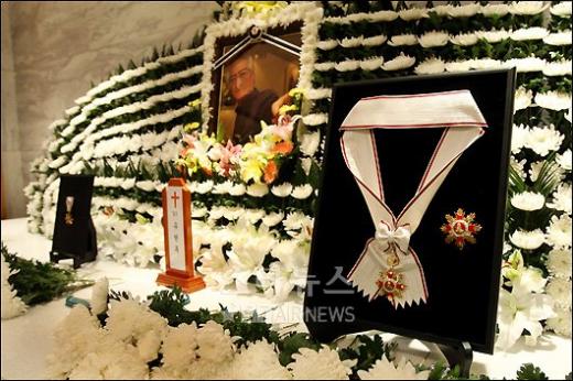 연예영화[★포토]금관문화훈장 놓여진 故 유현목 감독의 빈소발행 : 2009.06.30 ・ 20:27송희진 기자30일 오후 故 유현목 감독의 빈소가 마련된 강남성모병원 장례식장에 금관문화훈장(오른쪽)과 옥관문화훈장(왼쪽)이 영정앞에 놓여있다. 금관문화훈장은 유인촌 문화체육관광부 장관이 오늘(30일)전달했으며 옥관문화훈장은 생전에 수훈했다.<저작권자 © 스타뉴스, 무단전재 및 재배포 금지>유현목추천 기사좋아요 연예-영화의 인기 급상승 뉴스연예-영화의 최신 뉴스