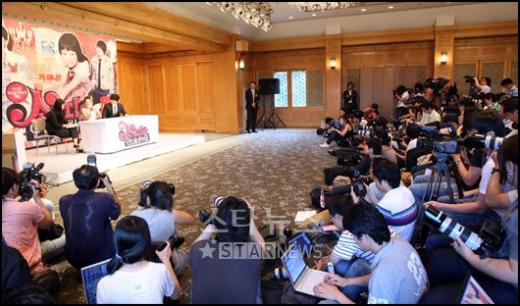 배우 장쯔이와 소지섭이 13일 오후 서울 장충동 신라호텔에서 열린 영화 '소피의 연애 매뉴얼' 기자간담회에서 취재진의 질문에 답하고 있다.