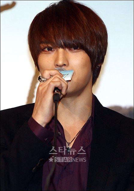그룹 동방신기의 영웅재중이 9일 오후 서울 성동구 왕십리 CGV에서 열린 영화 '천국의 우편배달부' 언론시사회에 참석해 취재진의 질문에 답하고 있다.