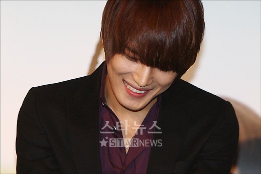 그룹 동방신기의 영웅재중이 9일 오후 서울 성동구 왕십리 CGV에서 열린 영화 '천국의 우편배달부' 언론시사회에 참석해 취재진의 질문에 답하고 있다.