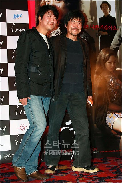 배우 송강호와 이현승감독이 3일 오후 서울 코엑스 메가박스에서 열린 영화 '하녀'의 VIP시사회에 참석하고 있다.
