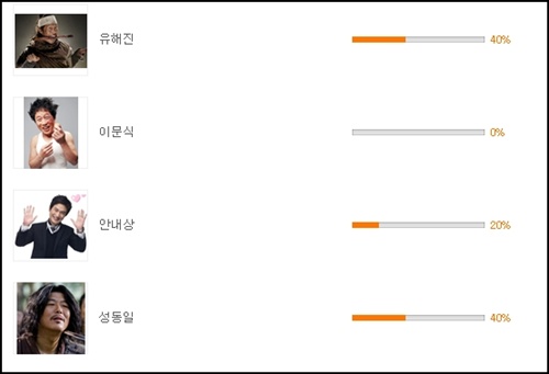 3위는 KBS 2TV '수상한 삼형제'에서 활약 중인 안내상, 4위는 이문식이 차지했다.