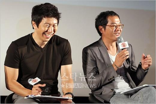 영화 '퀴즈왕' 제작보고회 MC로 나선 방송인 지석진이 남다른 개그감각의 소유자 김수로 섭외에 나서 눈길을 끌었다.