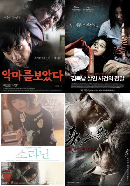ⓒ왼쪽 위에서부터 시계방향으로 영화 '악마를 보았다', '김복남 살인사건의 전말', '죽이고 싶은', '소라닌'의 포스터