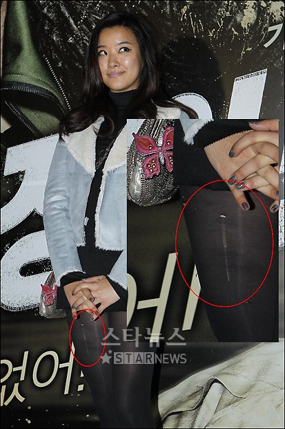가수 호란이 오후 서울 광진구 자양동 롯데시네마 건대입구에서 열린 영화 '심장이 뛴다' VIP시사회에 뜯어진 스타킹을 신고 참석하고 있다.
