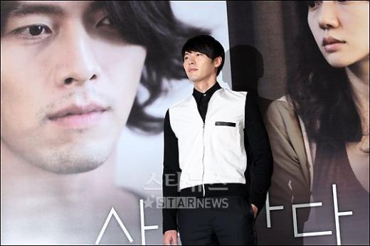 배우 현빈이 14일 오후 서울 왕십리 CGV에서 열린 영화 '사랑한다 사랑하지않는다' 언론시사회에 참석해 포즈를 취하고 있다.