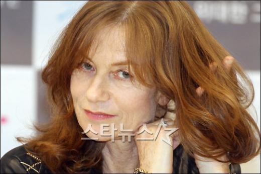프랑스 여배우 이자벨 위페르가 26일 오전 서울 방이동 한미사진미술관에서 사진전 '이자벨 위페르,위대한 그녀'를 소개하는 기자회견에 참석해 취재진의 질문을 받고 있다.