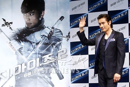 한편 영화 '지.아이.조2'는 세계 최고의 특수군단 '지.아이.조'가 인류를 위협하는 조직 자르탄과 맞서 싸우는 액션 블록버스터다. 한류스타 이병헌이 드웨인 존슨, 브루스 윌리스, 애드리앤 팰리키 등 할리우드 톱배우들과 함께 출연했다. 오는 6월 21일 한국개봉.