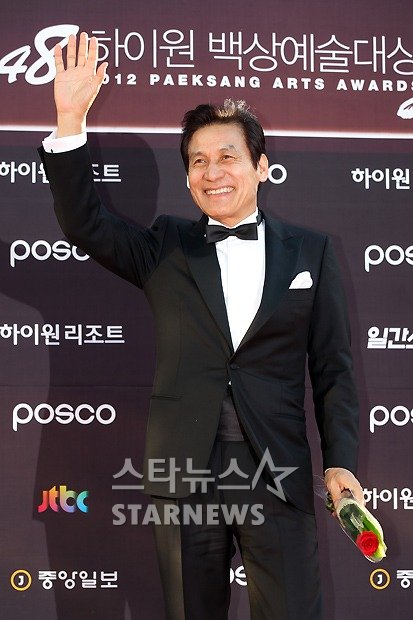 안성기는 26일 오후 서울 올림픽홀에서 이휘재 김아중 사회로 열린 제 48회 백상예술대상 시상식에서 '부러진 화살'로 영화 부문 남자 최우수상을 탔다.