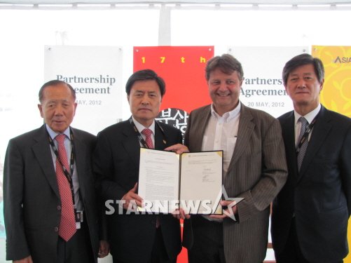 20일(현지시간) 부산국제영화제 조직위원장인 허남식 부산시장은 프랑스 칸 해변가에 위치한 영진위 부스에서 아시안필름마켓과 칸필름마켓 MOU(양해각서)를 체결했다. 허남식 시장은 이날 제롬 파이야르 칸필름마켓 운영위원장과 손을 맞잡고 향후 데이터베이스 교환 등 여러 업무를 상호협력하기로 약속했다.