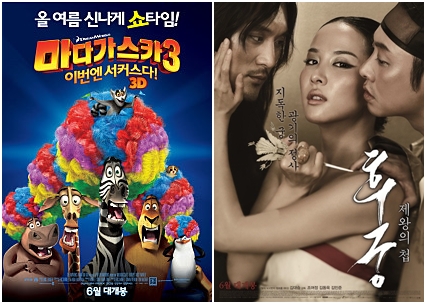 애니메이션 '마다가스카3:이번엔 서커스다'(이하 '마다가스카3')가 '후궁:제왕의 첩'(이하 '후궁')을 잡고 박스오피스 1위에 이름을 올렸다.