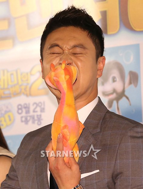 개그맨 김원효가 26일 오후 서울 용산CGV에서 열린 애니메이션 '새미의 어드벤쳐2' 언론시사 및 기자간담회에서 장난스러운 모습을 보이고 있다.