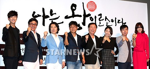 연예영화[★포토]'나는 왕이로소이다' 주역들, "파이팅!"발행 : 2012.07.30 ・ 17:23이기범 기자배우 주지훈, 박영규, 백윤식, 장규성 감독, 변희봉, 이미도, 임원희, 이하늬(왼쪽부터)가 30일 오후 서울 자양동 롯데시네마 건대입구에서 열린 영화 '나는 왕이로소이다' 시사회 기자간담회에서 포토타임을 갖고 있다.<저작권자 © 스타뉴스, 무단전재 및 재배포 금지>나는왕이로소이다추천 기사이기범 기자기자홈좋아요 연예-영화의 인기 급상승 뉴스연예-영화의 최신 뉴스