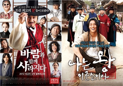 오는 8일 개봉할 '바람과 함께 사라지다'와 '나는 왕이로소이다'는 코믹 사극으로 같은 장르로 모처럼 극장가에 웃음을 퍼트릴 예정이다. 지난 7월 개봉한 '도둑들'과 '다크 나이트 라이즈'가 극장가 흥행을 주도하고 있는 가운데 웃긴 사극의 흥행도 기대를 모으고 있다.