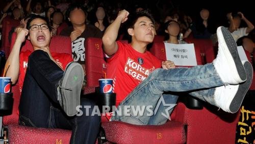 배우들은 관객들과 함께 '대한민국' 구호를 외치고, 함께 파도타기를 하는 등 열띤 응원을 벌였지만 경기는 아쉽게 0대 0 무승부로 끝이 났다. 경기에서 이기지는 못했지만 우리나라는 멕시코에 이어 조 2위로 8강에 진출하게 됐다.