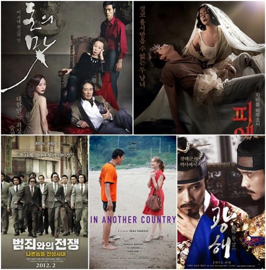 27일 영화계에 따르면 영화진흥위원회가 2013년 2월 열리는 제85회 아카데미영화상 외국어영화상 부문 한국 출품작을 지난 17일까지 접수를 받은 결과, '돈의 맛'과 '피에타' '범죄와의 전쟁:나쁜놈들 전성시대' '다른나라에서' '광해,왕이 된 남자' 등 5편이 출품한 것으로 확인됐다.