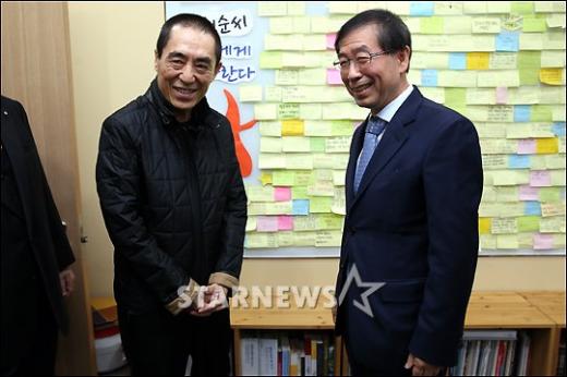 연예영화[★포토]장예모 감독 '박원순시장과 환담'발행 : 2012.10.31 ・ 10:02임성균 기자박원순 서울시장과 장예모 감독이 31일 오전 서울시청 집무실에서 '서울-북경 간 문화 교류 환담'을 나누고 있다.장예모 감독은 제49회 대종상 영화제 참석차 방한했으며 박원순 시장과는 두 도시 간 영화를 비롯한 문화 교류 등을 논의하고자 만났다.<저작권자 © 스타뉴스, 무단전재 및 재배포 금지>장예모감독 박원순시장 환담추천 기사임성균 기자기자홈좋아요 연예-영화의 인기 급상승 뉴스연예-영화의 최신 뉴스