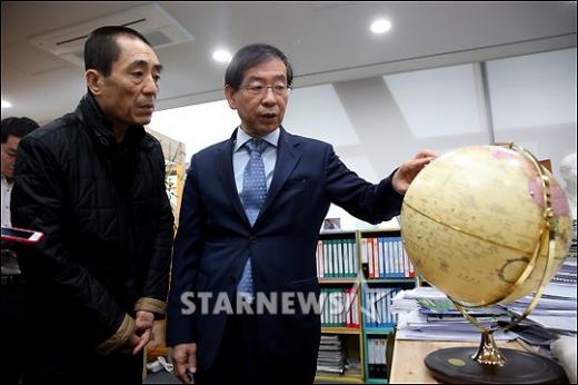 박원순 서울시장과 장예모 감독이 31일 오전 서울시청 집무실에서 '서울-북경 간 문화 교류 환담'을 나누고 있다.