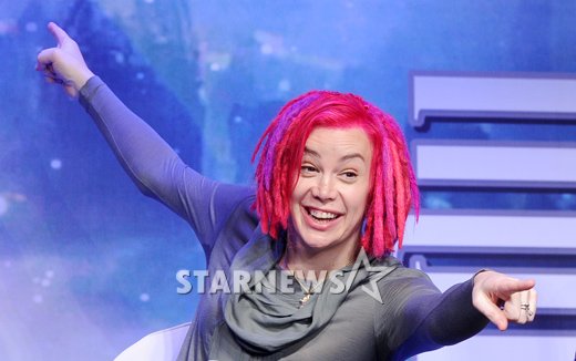 라나 워쇼스키 감독이 13일 오전 서울 광진구 쉐라톤 워커힐 호텔에서 열린 영화 '클라우드 아틀라스' 기자간담회에 참석해 즐거워하고 있다.