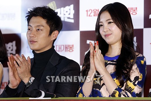 비스트 윤두준, 에이핑크 손나은이 17일 오후 서울 광진구 자양동 롯데시네마에서 열린 영화 '가문의 영광5-가문의 귀환' 언론시사회 기자간담회에서 박수를 치고 있다.