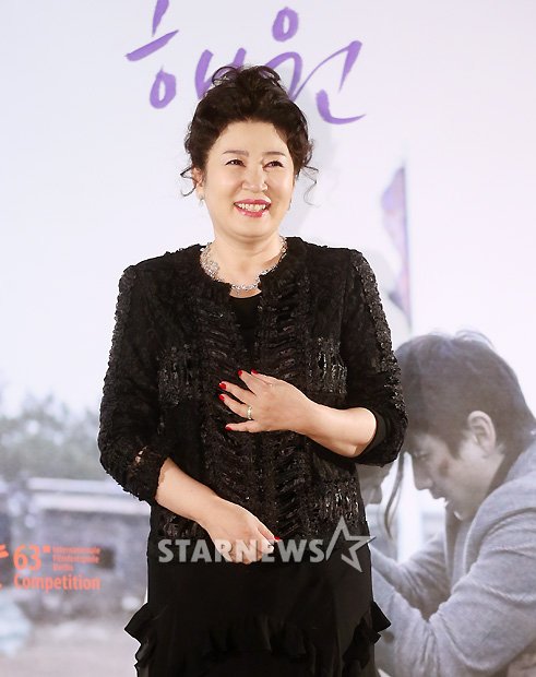 배우 김자옥이 19일 오후 서울 왕십리CGV에서 열린 영화 '누구의 딸도 아닌 해원' 언론시사 및 간담회에 참석하고 있다.