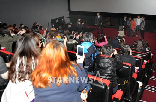 7일 오후 서울 용산 CGV에서 열린 영화 '지.아이.조 2' 무대인사 및 미니 관객과의 대화에 참석한 배우 이병헌과 팬들이 즐거운 시간을 보내고 있다.