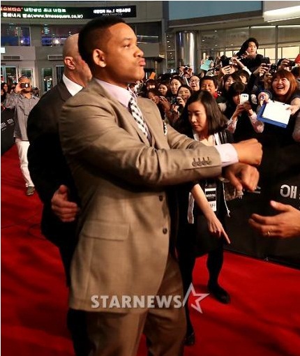 7시 30분께 레드카펫에 등장한 윌 스미스와 제이든 스미스는 여유 있는 모습으로 팬들과 시간을 보냈다. 특히 윌 스미스와 제이든 스미스는 싸이의 '강남스타일' 말춤을 추는 등 팬서비스를 선보여 팬들을 즐겁게 했다.