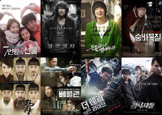 올해 한국영화는 '7번방의 선물'(1281만명), '설국열차'(933만명) '관상'(901만명) '베를린'(716만명) '은밀하게 위대하게'(695만명), '숨바꼭질'(560만명), '더 테러 라이브'(557만명) '감시자들'(550만명) '신세계'(468만명) 등 다양한 영화들의 고른 흥행으로 큰 성과를 냈다.