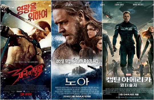 3월은 극장가 비수기? 2014년 할리우드 대작들은 3월부터 봇물이다. 구약성서의 노아의 방주를 소재로 한 '노아', '퍼스트 어벤져', '어벤져스'의 후속작 '캡틴 아메리카: 윈터 솔져', 살라미스 해전을 재현하는 '300: 제국의 부활' 등 기대작들이 3월 극장가를 달군다.