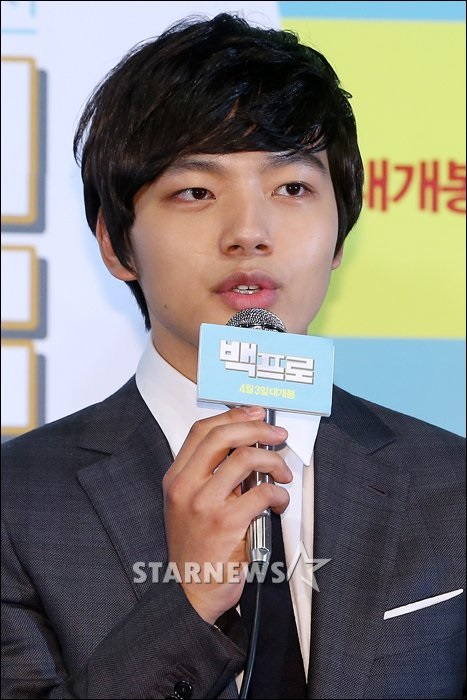 윤시윤은 27일 오후 서울 광진구 롯데시네마 건대입구에서 열린 영화 '백프로'(감독 김명균) 언론시사회에서 영화가 500만 관객을 넘을 시 여진구와 걸그룹 춤을 추겠다고 밝혔다.